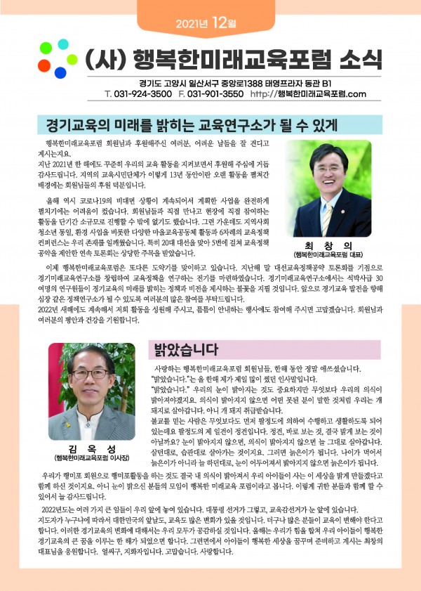 행복한미래교육포럼 소식지 2021년