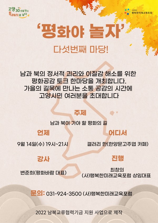 가을의 길목에 만나는 소통 공감의 시간에 고양시민 여러분을 초대합니다