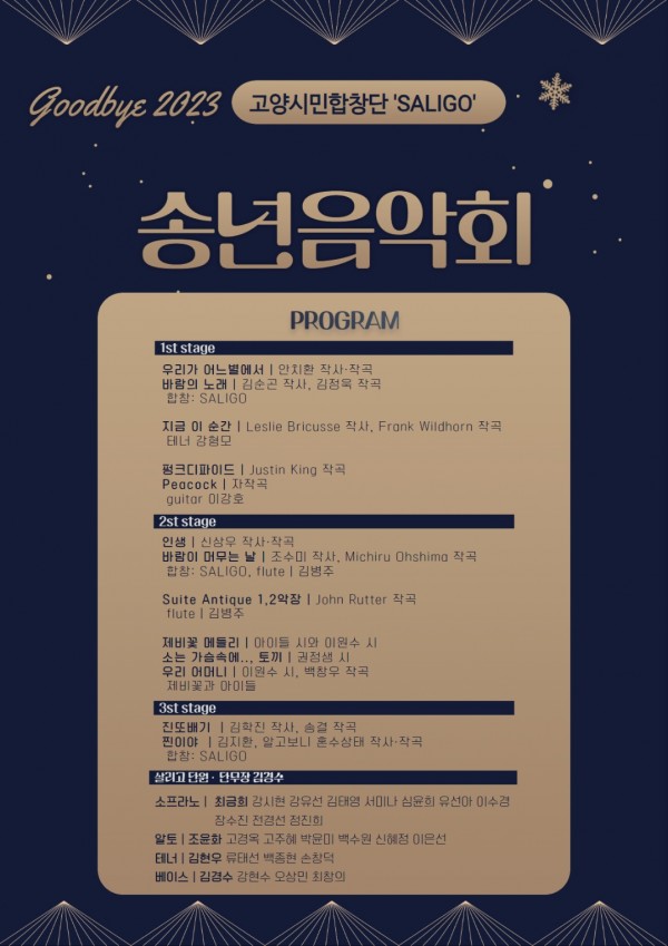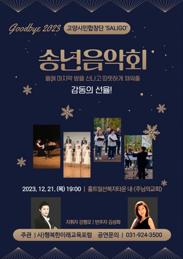 올해를 보내고 새해를 맞이하는 길목에서 행복한미래교육포럼의 SALIGO 합창단이 송년 음악회를 마련합니다.