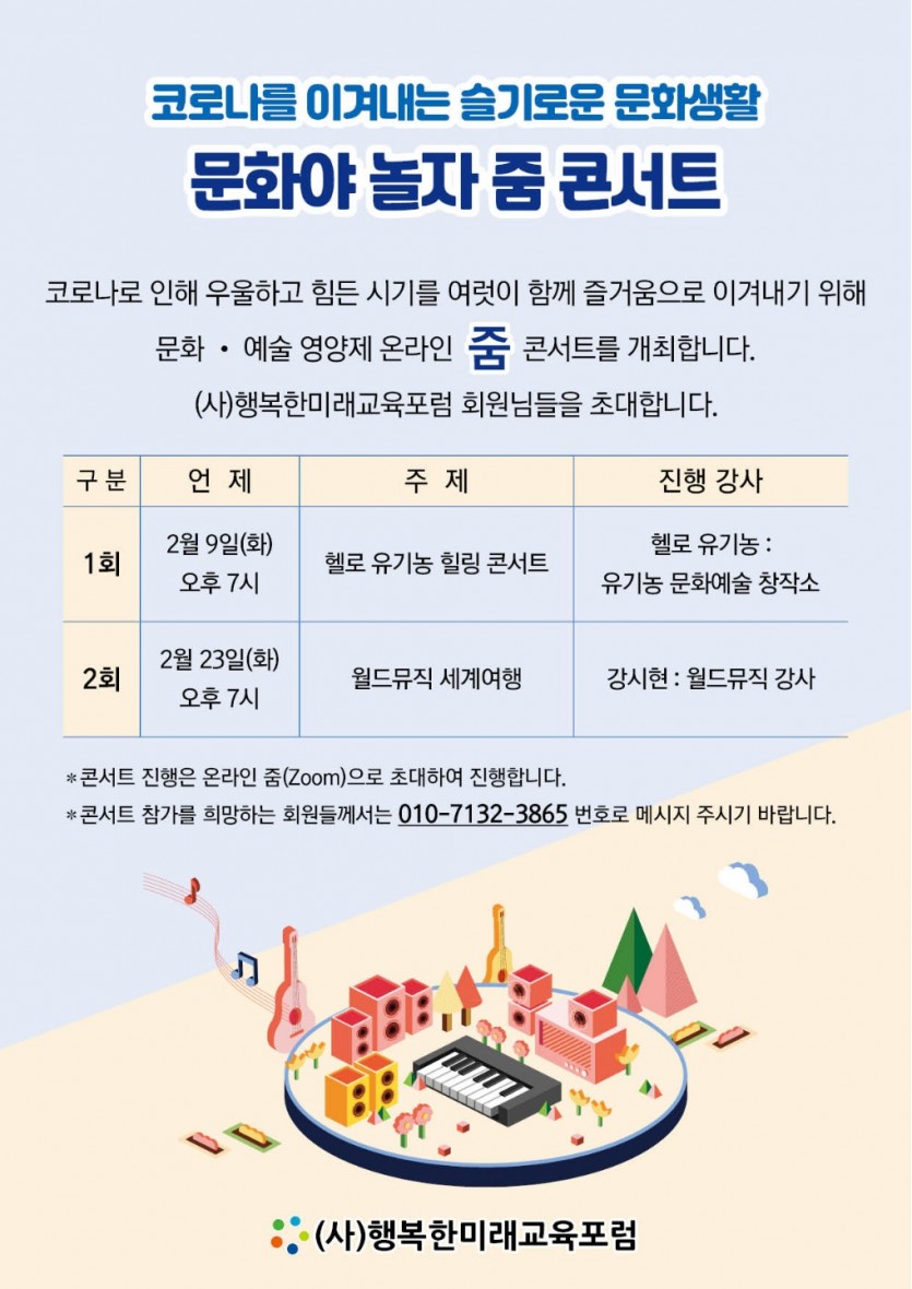 이겨내기 위해 문화 • 예술 영양제 온라인 줌 콘서트를 준비하여